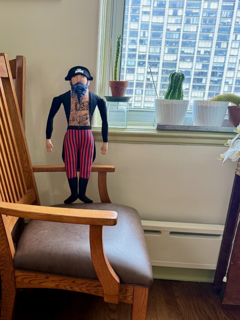 Pirate 2 Posted on April 30, 2025 by mimik I like the hat but his hair is pretty good too :-) Stormy blue eyes. Another antique button.