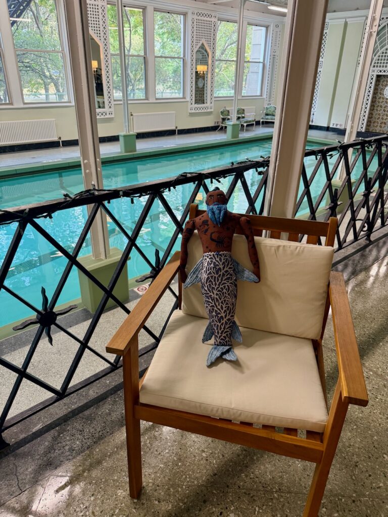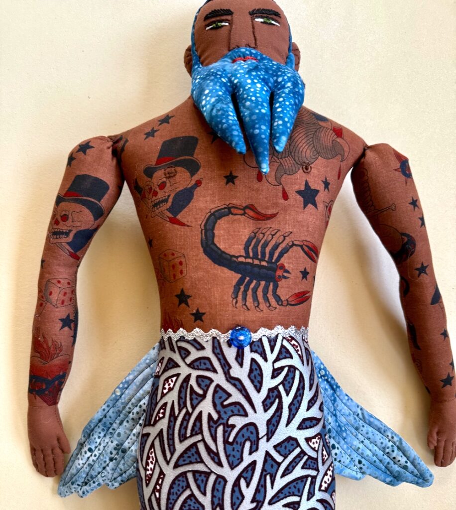 And this batik fabric looks like bubbles- perfect for a merman’s beard.