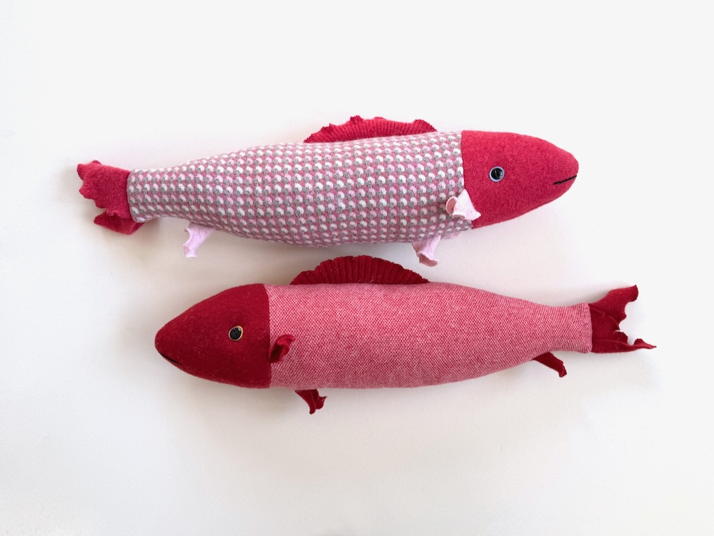 It was a fun afternoon, meeting some new people and chatting with friends. The fish were on another sofa and I forgot to take their photo. I made some new ones because the Holiday season had left my stock depleted. Here are the first 2-