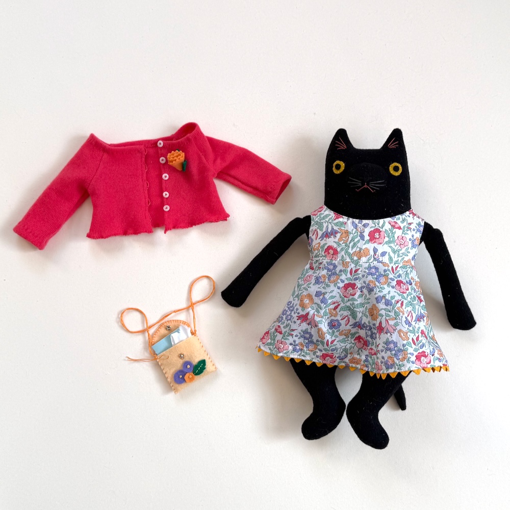 Her dress is Liberty lawn fabric. It is such a perfect weight and pattern scale for little kitties.