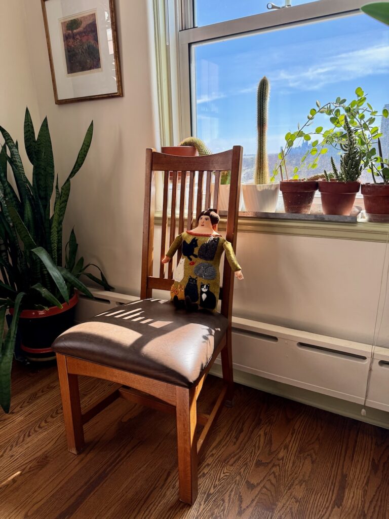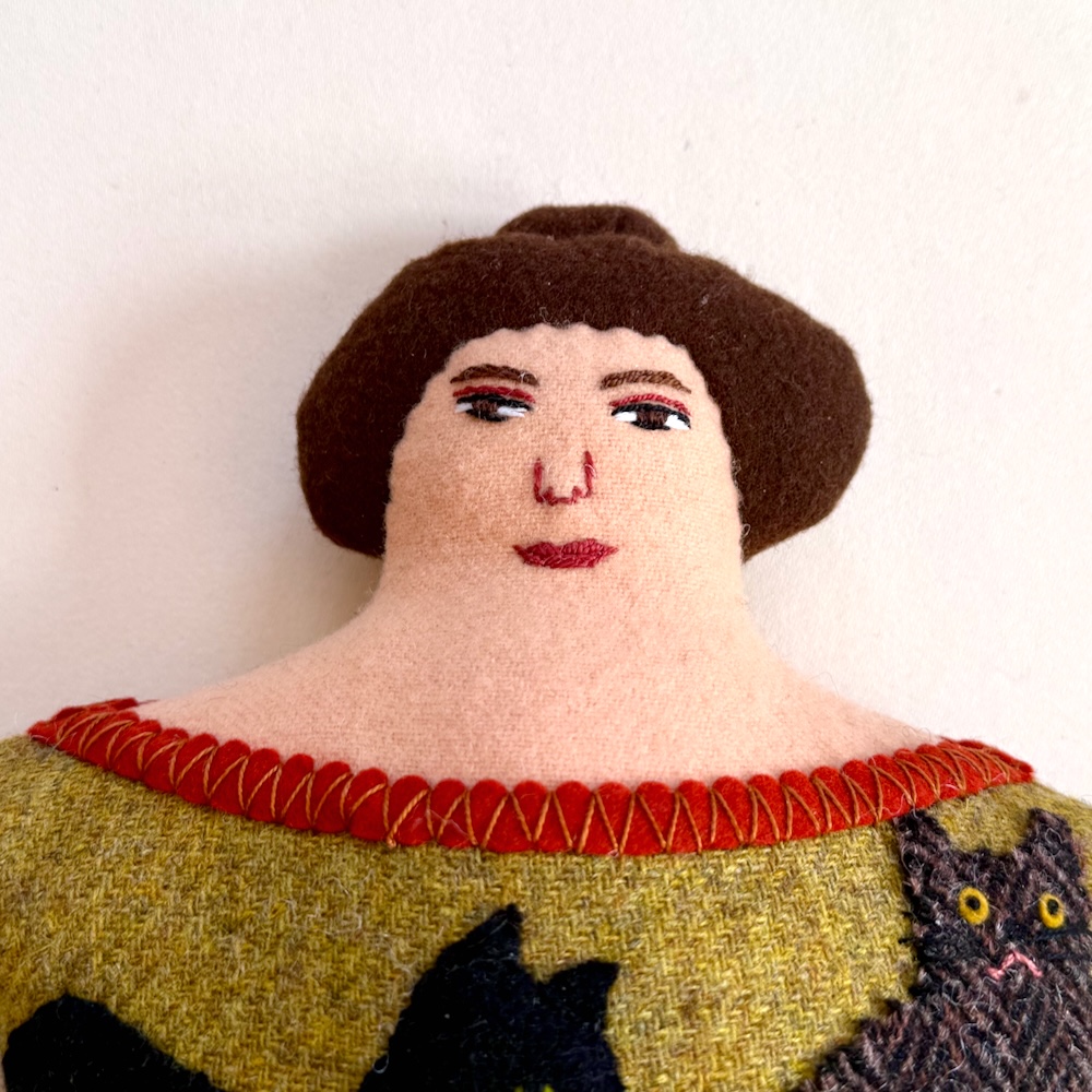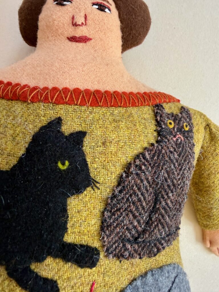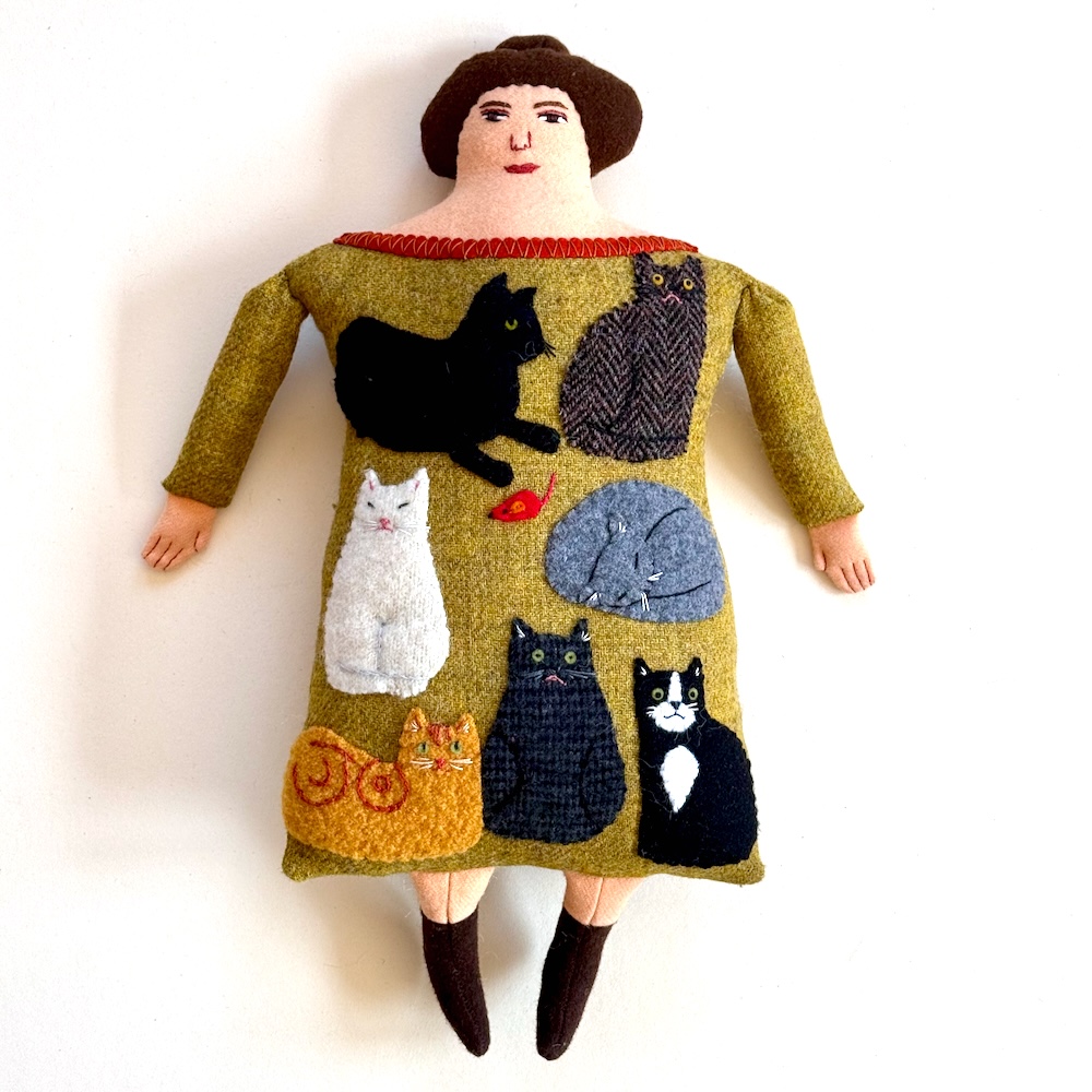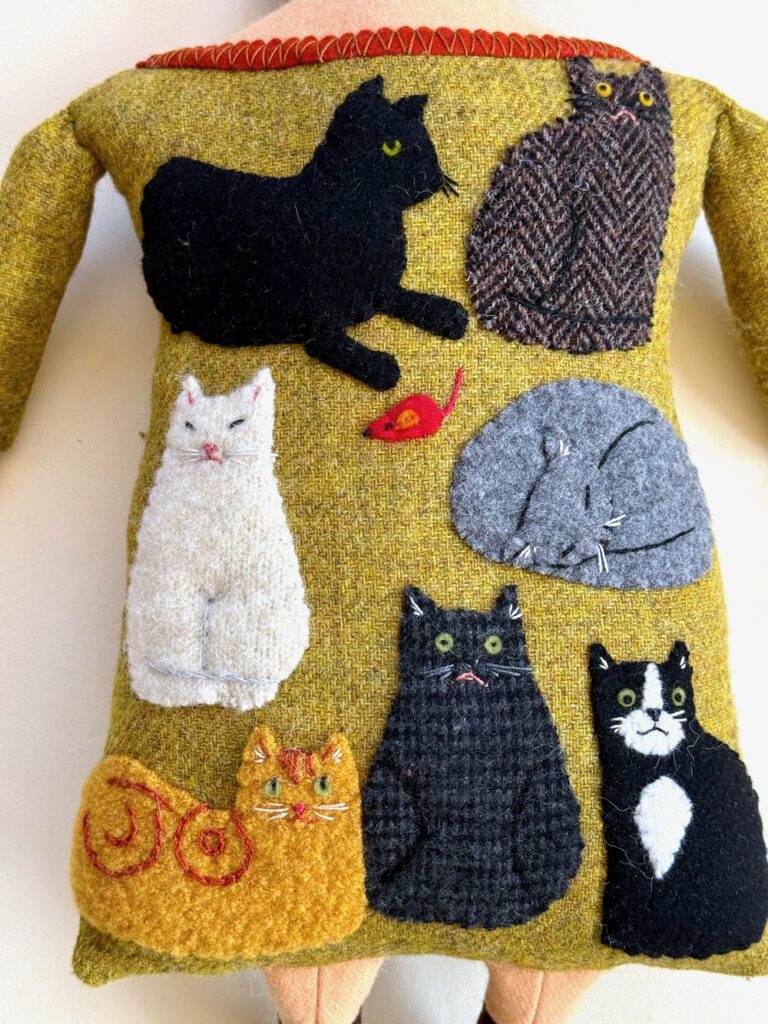 A selection of cats on a yellow-green tweedy background. If it was accurate, it’d be covered in cat hair!
